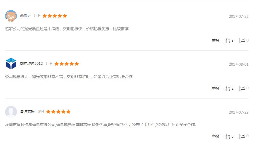 當別人都在說毅順模具好的時候,你也許會懷疑,但是你去網上搜一下,就會發現關于毅順模具的正向評論多如牛毛,大部分都是關于交貨準時、精度高之類的,或者說你可以聯系毅順的客服,他們可以給你提供相應的成功案例,從小公司到世界500強企業,只有你想不到的,沒有毅順模具不能做的。